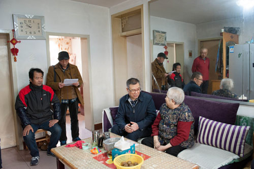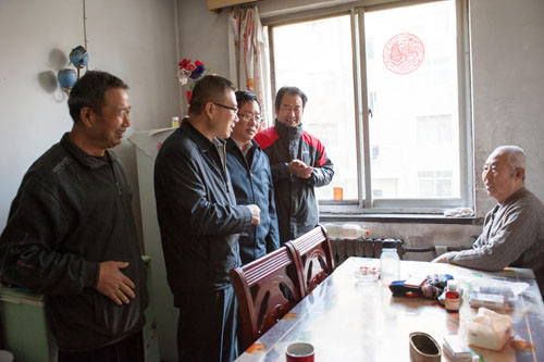 12月7日上午,离退休职工党委书记刘晓正,南校区第二党总支书记高保山,第二党总支第一党支部书记郭宗昌,第二党支部委员蒋尽才,与校区工作人员一起,看望慰问困难职工党员及困难群众。