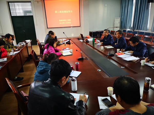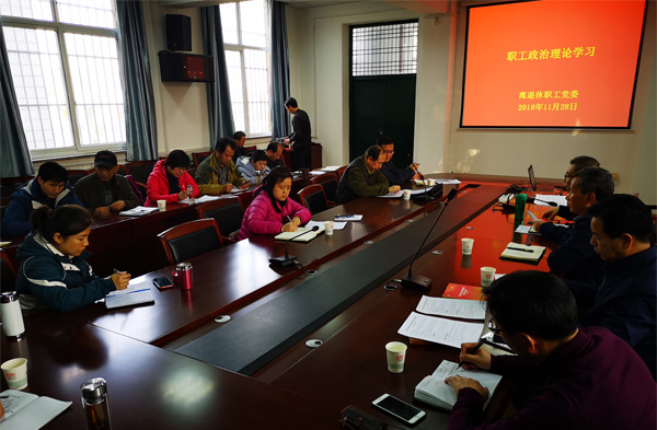 2018年11月28日,离退休职工党委组织全体在职职工进行集体政治理论学习。