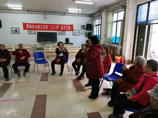 3月6日下午,喜逢全国“两会”召开之际,为庆祝第109个“三八”国际劳动妇女节, 丰富离退休女职工精神文化生活,给全所女职工送上一份真挚的关怀与节日的问候,植物所校区离退休服务中心在校区俱乐部举办庆“三八”节游艺活动,在“我和我的祖国”乐曲中,30多位离退休女职工欢聚一堂。离退休工作处副处长程媛参加活动。
